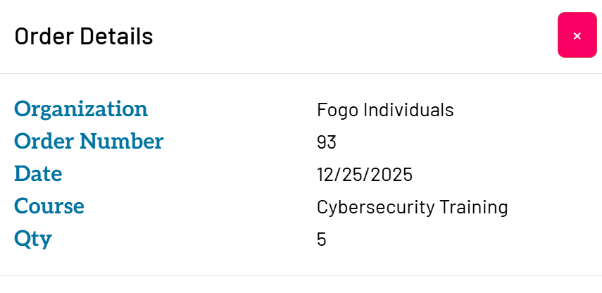 Select the desired Organization within the Orders box. A pop up will appear that looks like this: