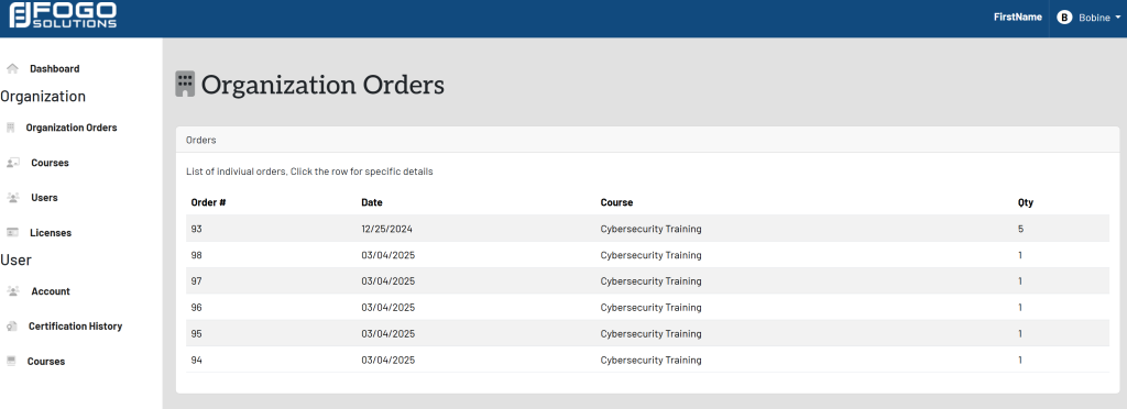 In the left side navigation bar, select Organization Orders. This will take you here: